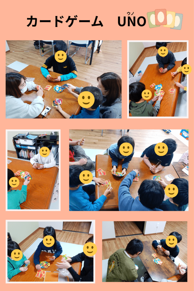 最近、自由時間に「ウノしよ~」とお友だちやスタッフを誘って遊んでいる姿をよく見ます👀