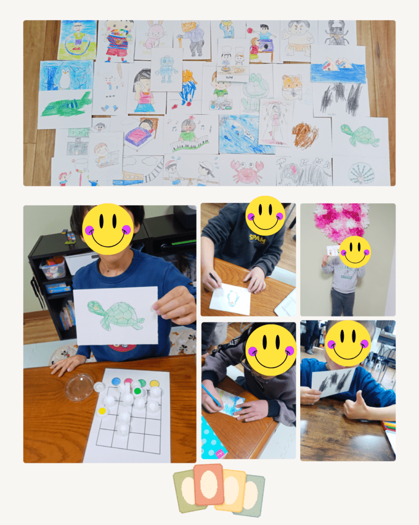 好きなカードを選び自由に色を塗っていきます👑それぞれの絵に合うように想像を膨らませ丁寧に塗る子や、一気に豪快に塗る子など✨一人ひとり楽しみながら取り組んでいました👍