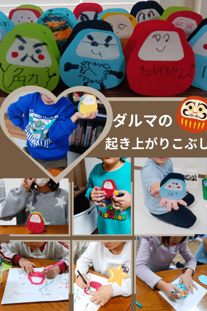 さて1月の制作でダルマの起き上がりこぶしを作りました☆凛々しいお顔や可愛い顔にする子など、それぞれ自分だけのダルマが完成しました👍